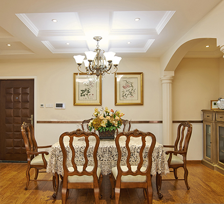 是以中國(guó)傳統(tǒng)文化作為背景,在色彩搭配上以黑、紅、為主,室內(nèi)多采用對(duì)稱式的布局方式,格調(diào)高雅,造型簡(jiǎn)樸優(yōu)美,色彩濃重而成熟。